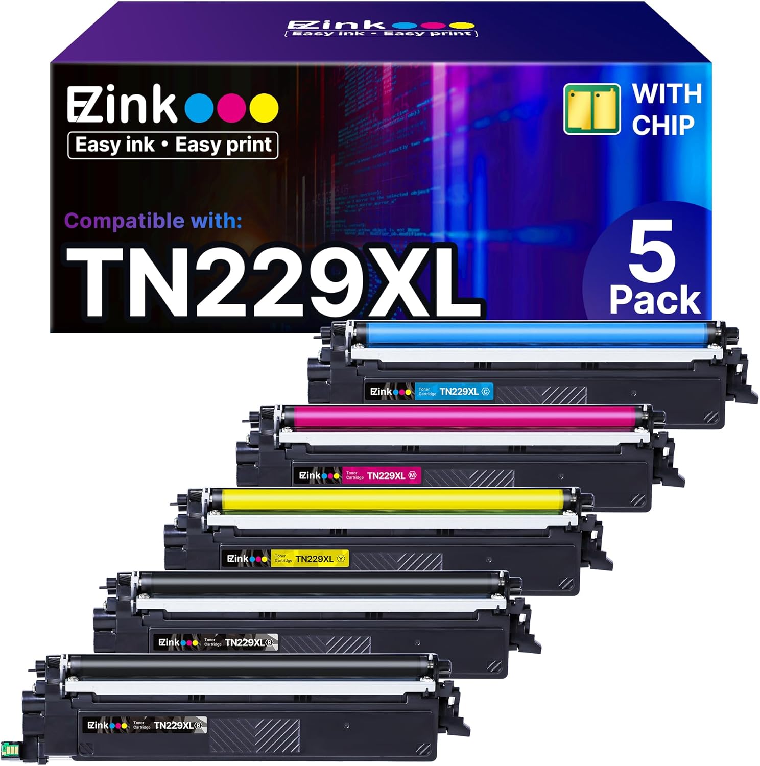 E-Z Ink Compatible TN229XL Toner Cartridges Replacement for Brother TN229XL TN-229XL TN229 XL to use with MFC-L3720CDW MFC-L3780CDW HL-L3220CDW HL-L3280CDW HL-L3300CDW Printer (TN229XLBK/C/M/Y-5 Pack)